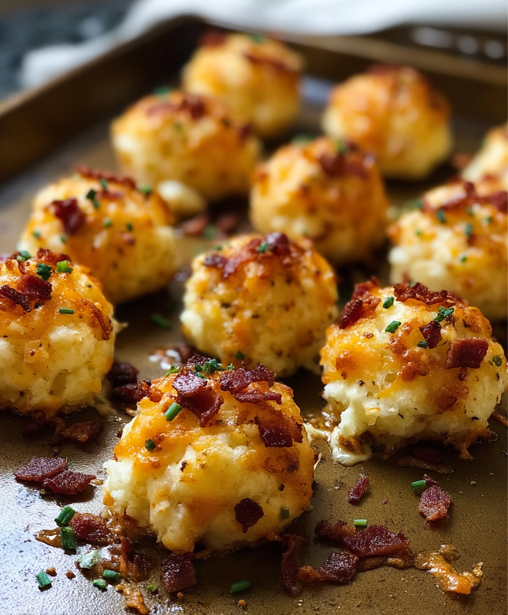 If you’re searching for a fun, easy, and totally irresistible way to use up leftover mashed potatoes, look no further than these Baked Potato Balls. They’re golden on the outside, fluffy on the inside, and loaded with gooey cheese, smoky bacon, and fresh chives. Whether you’re serving them as a party appetizer, game day snack, or a fun side dish, they’re guaranteed to be a crowd-pleaser.